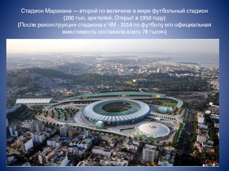 Слайд 20Стадион Маракана — второй по величине в мире футбольный стадион