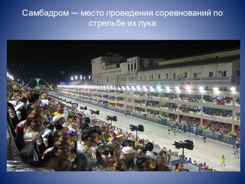 Слайд 21Самбадром — место проведения соревнований по стрельбе из лука