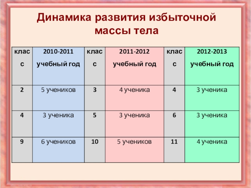 Отсюда следует, что пропагандистскую работу по формированию здорового образа жизни необходимо вести среди учащихся, чтобы способствовать предотвращению появления избыточной массы тела у детей.