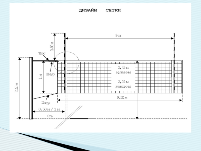 Слайд 3Игра ведётся с волейбольным мячом на волейбольной площадке. В каждой команде