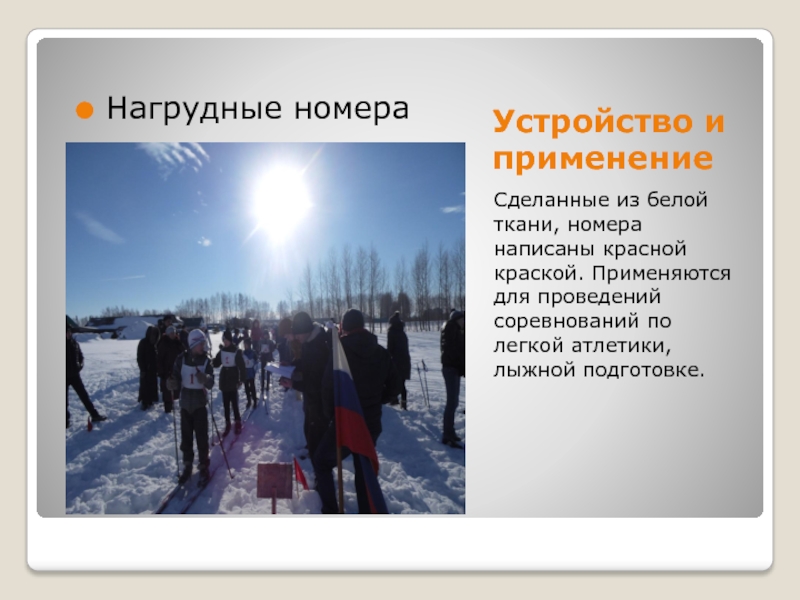 Применяется для проведения соревнований по легкой атлетики, лыжной подготовке.