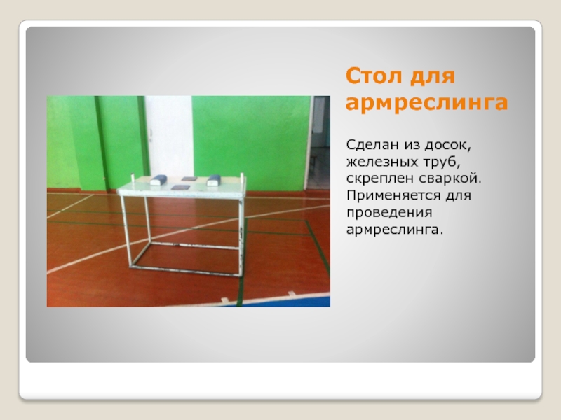 Изготовлено из труб, соединены, сваркой. На ней можно выполнять различные