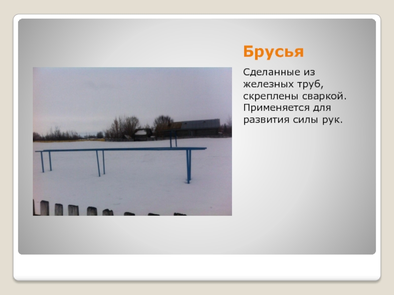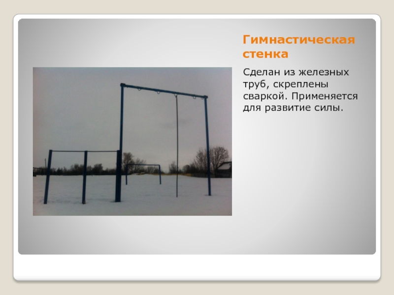 Сделанные из железных труб, скреплены сваркой. Применяется для развития силы