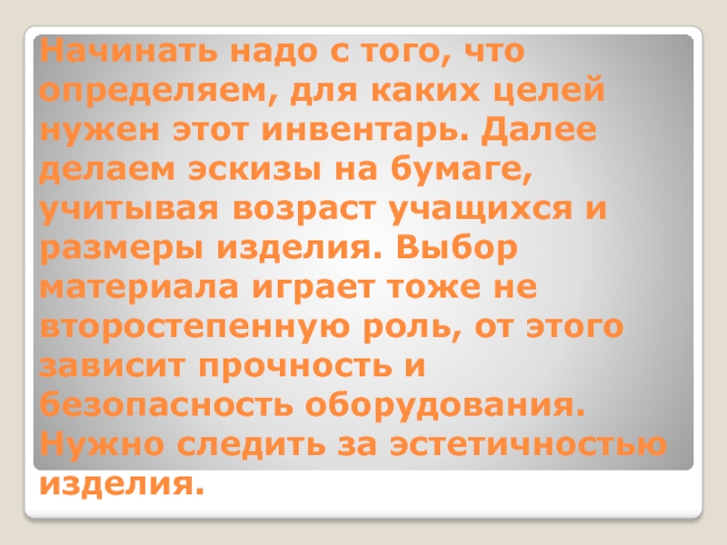 инвентарь. Далее делаем эскизы на бумаге, учитывая возраст учащихся и размеры изделия. Выбор материала играет тоже не второстепенную роль, от этого зависит прочность и безопасность оборудования. Нужно следить за эстетичностью изделия.
