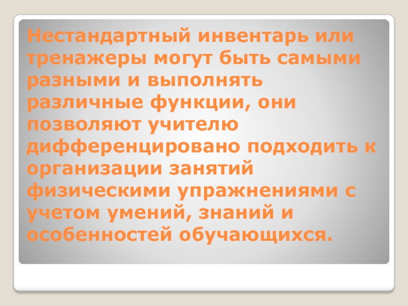 Слайд 7Нестандартный инвентарь или тренажеры могут быть самыми разными и выполнять различные