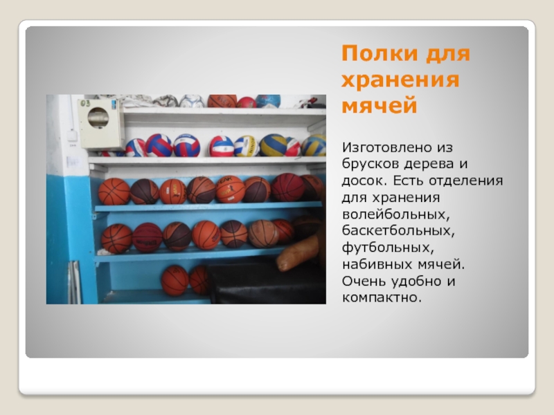 для хранения волейбольных, баскетбольных, футбольных, набивных мячей. Очень удобно и компактно.