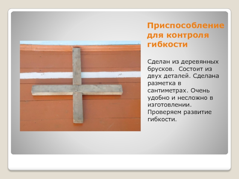 Сделана разметка в сантиметрах. Очень удобно и несложно в изготовлении. Проверяем развитие гибкости.