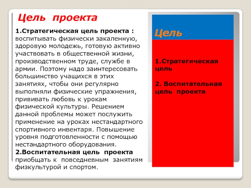2.Воспитательная цель проекта приобщать к повседневным занятиям физкультурой и спортом.