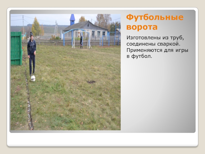 Изготовлены из труб, соединены сваркой. Применяются для игры в футбол.