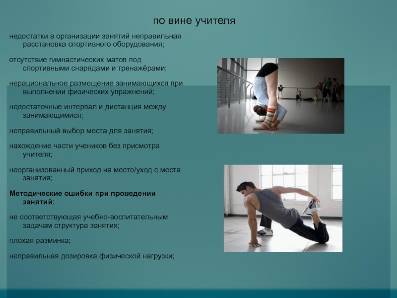 недостатки в организации занятий неправильная расстановка спортивного оборудования;