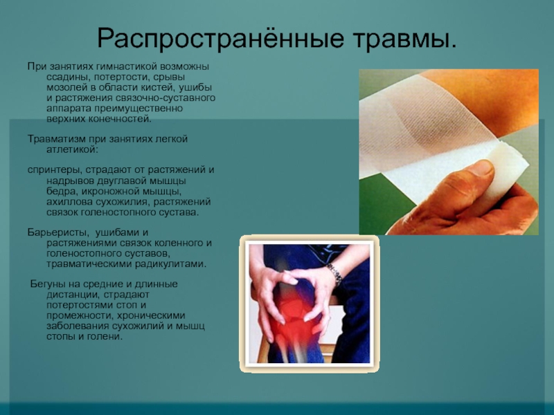 При занятиях гимнастикой возможны ссадины, потертости, срывы мозолей в области