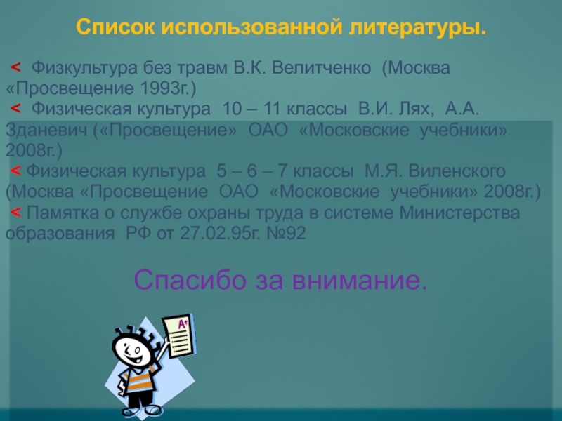 Слайд 24 < Физкультура без травм В.К. Велитченко (Москва «Просвещение 1993г.)