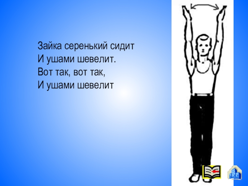 Слайд 4Зайка серенький сидит И ушами шевелит. Вот так, вот так,