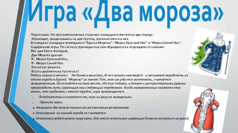 В середине площадки помещаются "братья Морозы": "Мороз Красный Нос" и "Мороз Синий Нос".