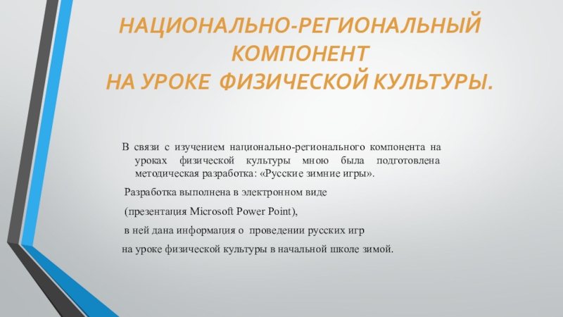 компонента на уроках физической культуры мною была подготовлена методическая разработка: «Русские зимние игры».