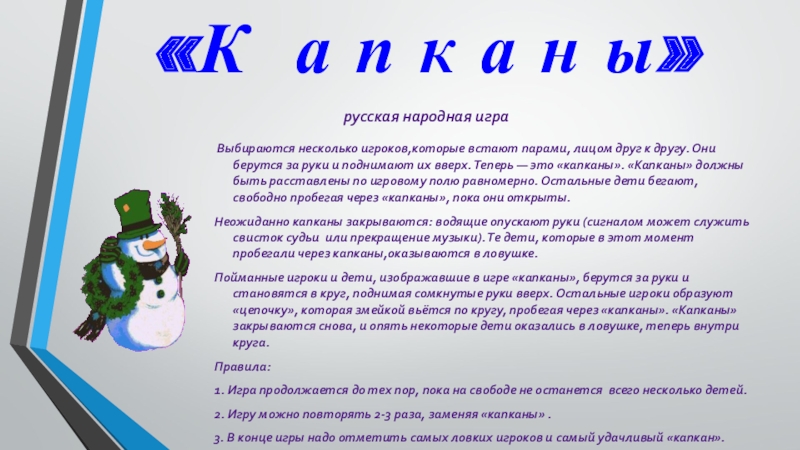 2. Игру можно повторять 2-3 раза, заменяя «капканы» .