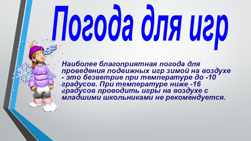 Наиболее благоприятная погода для проведения подвижных игр зимой на