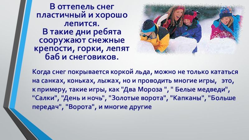 Слайд 7В оттепель снег пластичный и хорошо лепится.