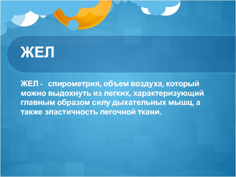 ЖЕЛ - спирометрия, объем воздуха, который можно выдохнуть из легких,