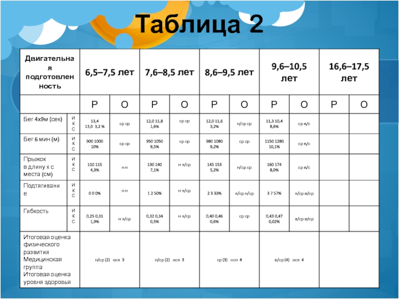 (таблицы). В их фиксируются основные показатели, возраст, результаты. Ведение карточек поручалось ученикам. Вначале ребята знакомились с инструкцией по их заполнению, затем демонстрировалась методика измерений и их оценки. Так формировалась готовность учащихся к овладению методами самоконтроля.