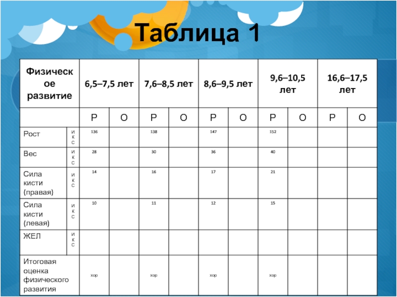 уровень физического развития (рост, вес, динамометрия, спирометрия);