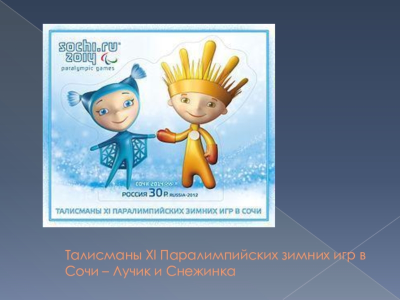 Слайд 7Талисманы XI Паралимпийских зимних игр в Сочи – Лучик и Снежинка