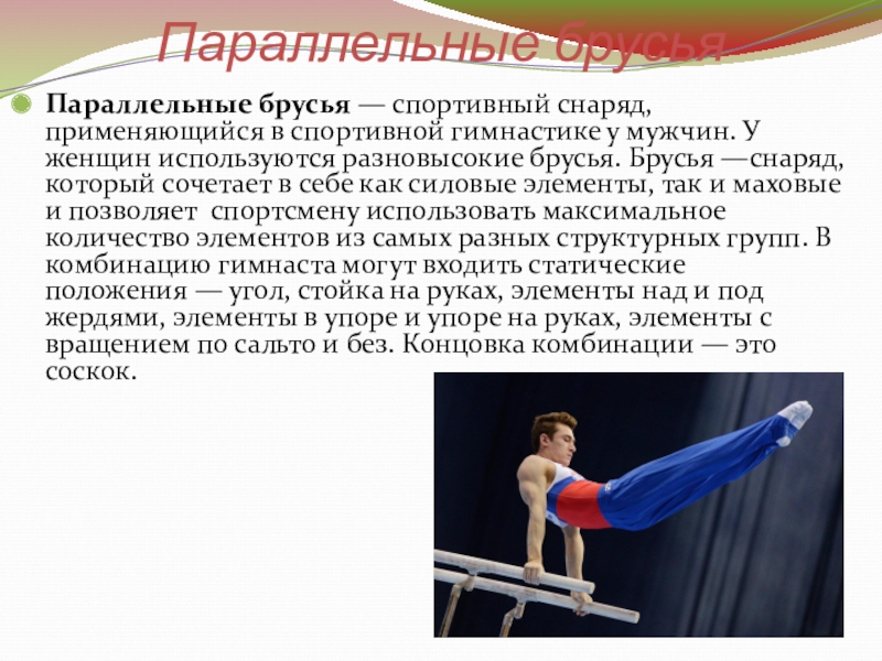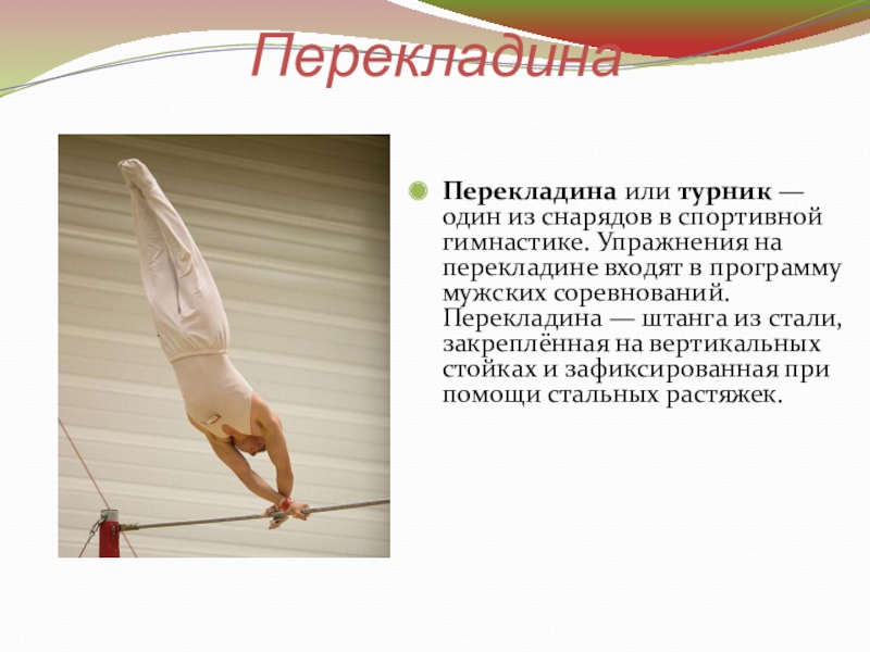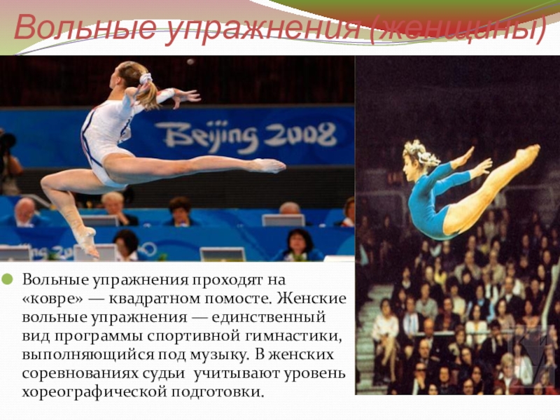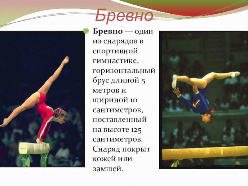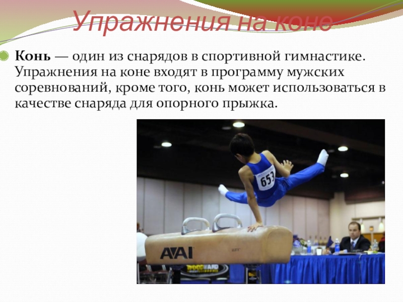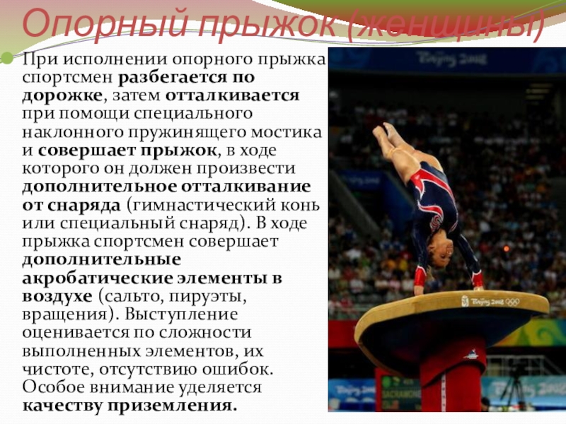 Гимнастические упражнения входили в систему физического воспитания ещё в Древней Греции, служили средством подготовки юношей к участию в Олимпийских играх. С конца XVIII — начала XIX века в западноевропейских и русской системах физического воспитания использовались упражнения на гимнастических снарядах, опорные прыжки. Во 2-й половине XIX века в ряде стран Западной Европы стали проводиться соревнования по некоторым видам гимнастических упражнений. Первые состязания в России состоялись в 1885 году в Москве.