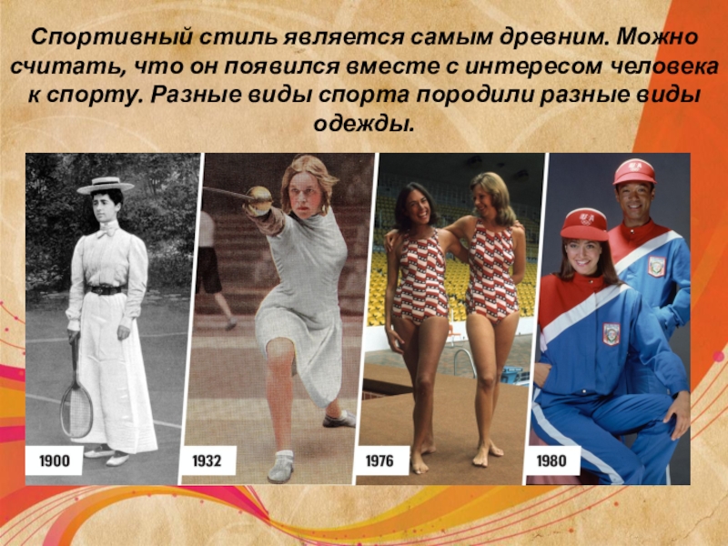 Слайд 2Спортивный стиль является самым древним. Можно считать, что он появился вместе