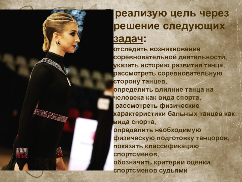 Цель работы: показать бальный спортивный танец как вид спорта.