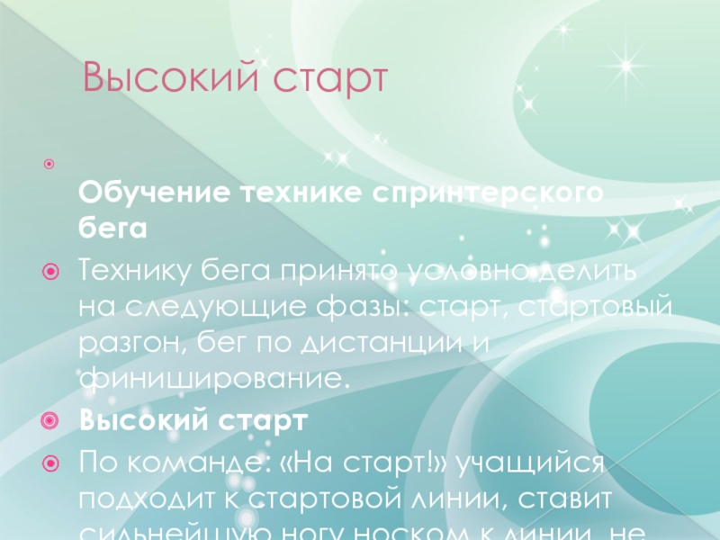 Слайд 8Методическая последовательность обучения технике высокого старта