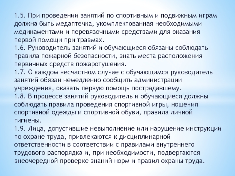 Техника безопасности на занятиях по спортивным и подвижным играм