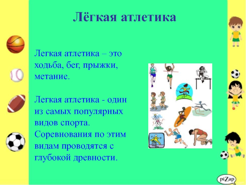 Легкая атлетика – это ходьба, бег, прыжки, метание.