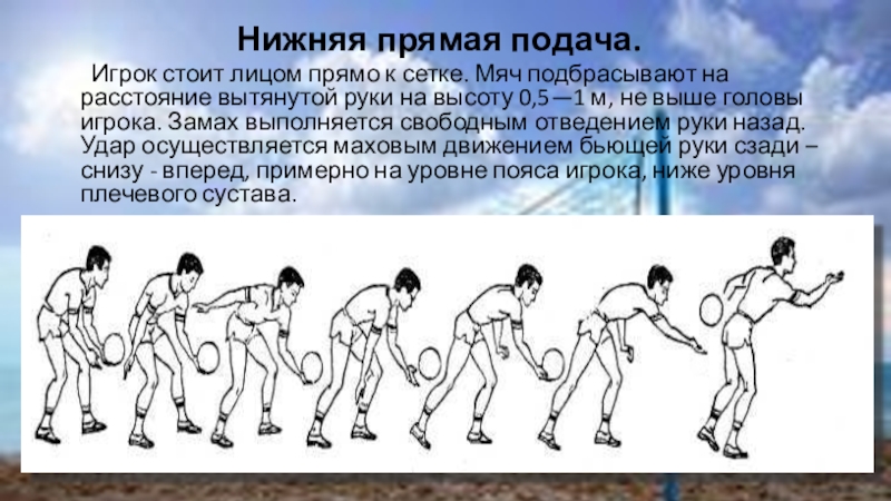 Слайд 9Нижняя прямая подача.