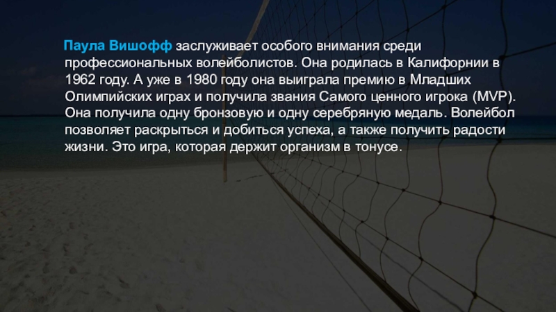 Слайд 25 Паула Вишофф заслуживает особого внимания среди профессиональных волейболистов.