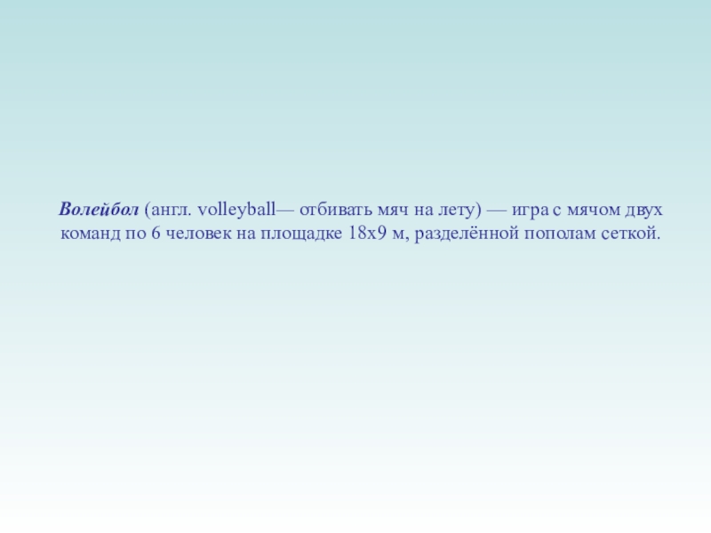 Волейбол (англ. volleyball— отбивать мяч на лету) — игра с мячом