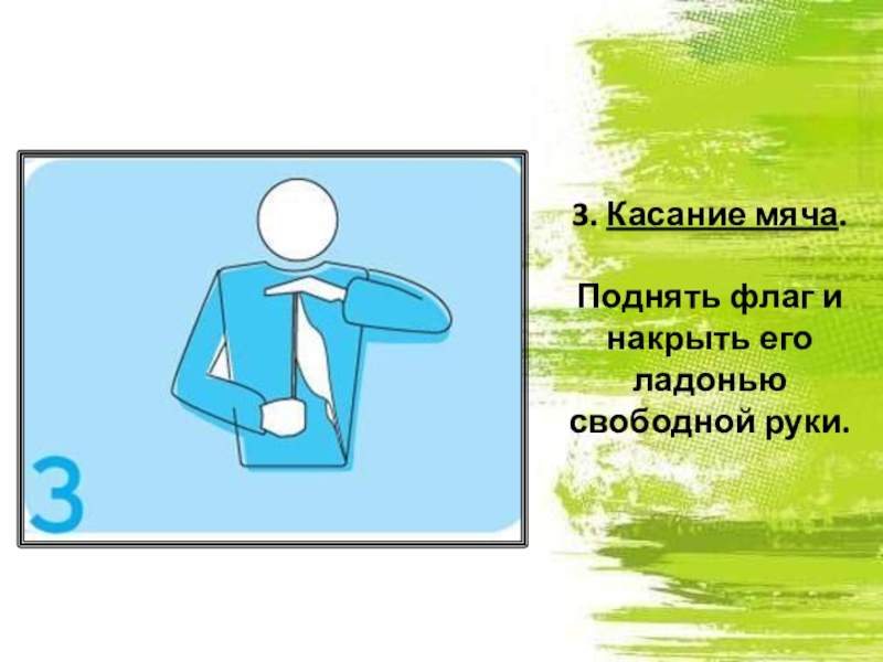 Слайд 343. Касание мяча. Поднять флаг и накрыть его ладонью свободной руки.