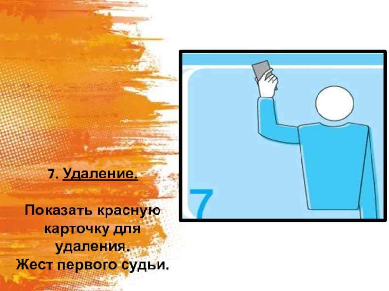 7. Удаление.  Показать красную карточку для удаления. Жест первого судьи.