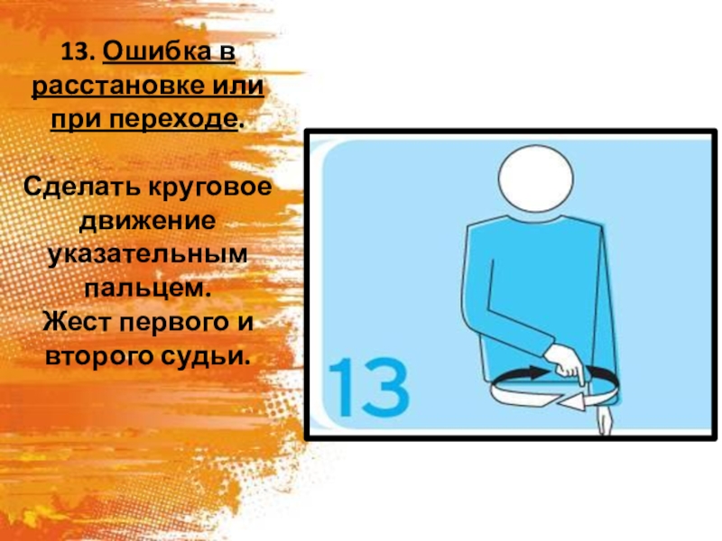 13. Ошибка в расстановке или при переходе.   Сделать круговое движение указательным пальцем. Жест первого и