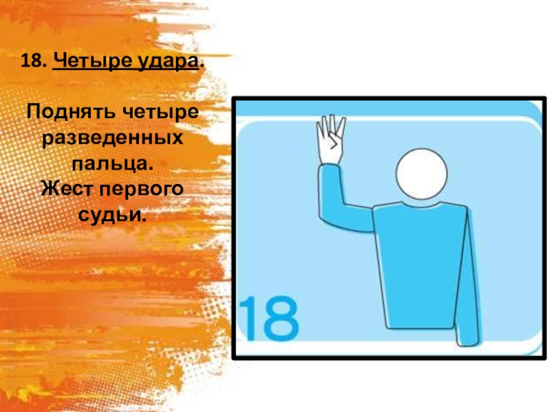 Слайд 2318. Четыре удара. Поднять четыре разведенных пальца. Жест первого судьи.