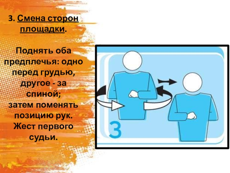 Слайд 83. Смена сторон площадки. Поднять оба предплечья: одно перед грудью, другое -