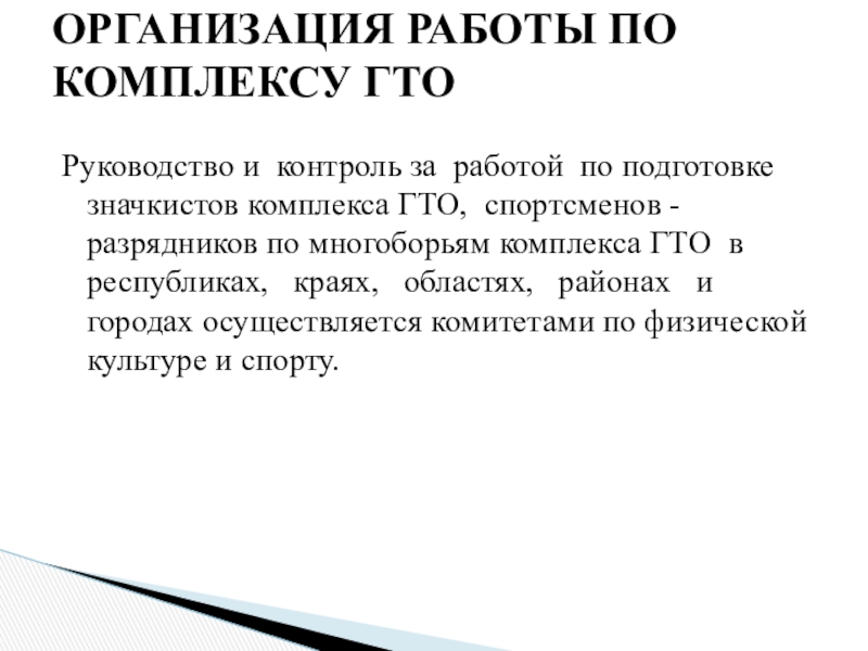 ОРГАНИЗАЦИЯ РАБОТЫ ПО КОМПЛЕКСУ ГТО
