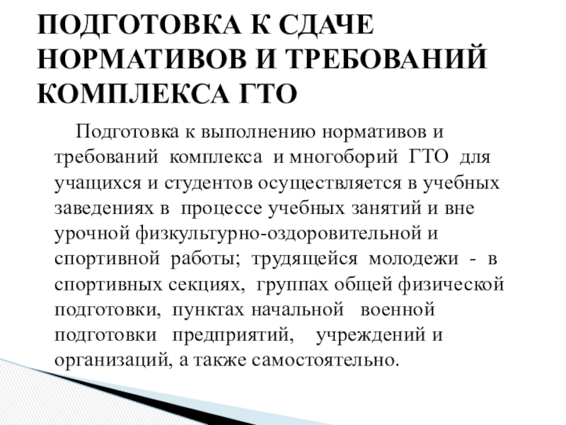 ПОДГОТОВКА К СДАЧЕ НОРМАТИВОВ И ТРЕБОВАНИЙ КОМПЛЕКСА ГТО