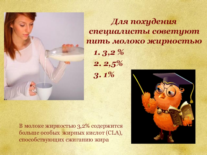 В молоке жирностью 3,2% содержится больше особых жирных кислот (CLA), способствующих сжиганию жира