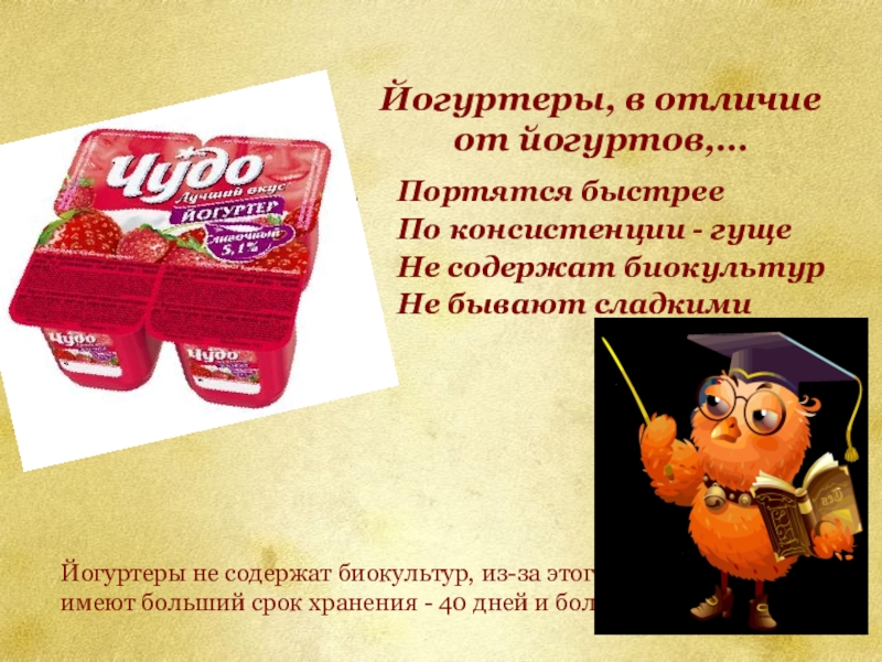 Йогуртеры не содержат биокультур, из-за этого имеют больший срок хранения - 40 дней и более.