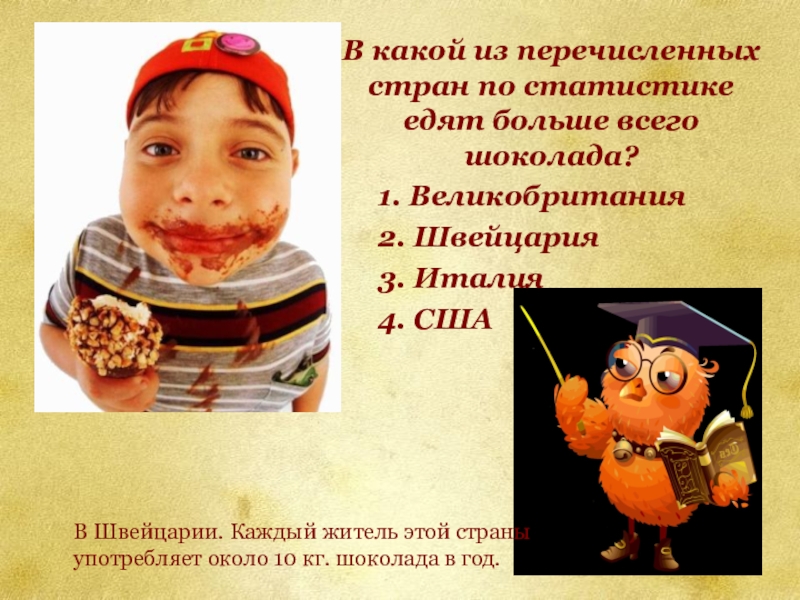 В Швейцарии. Каждый житель этой страны употребляет около 10 кг. шоколада в год.