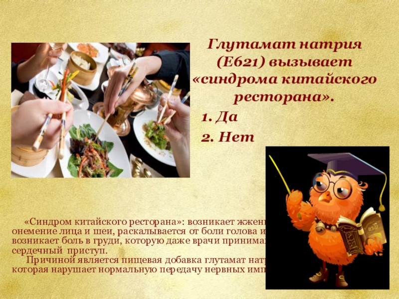 Глутамат натрия (Е621) вызывает «синдрома китайского ресторана».