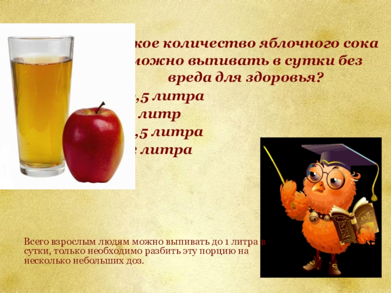 Всего взрослым людям можно выпивать до 1 литра в сутки, только необходимо разбить эту порцию на несколько небольших доз.