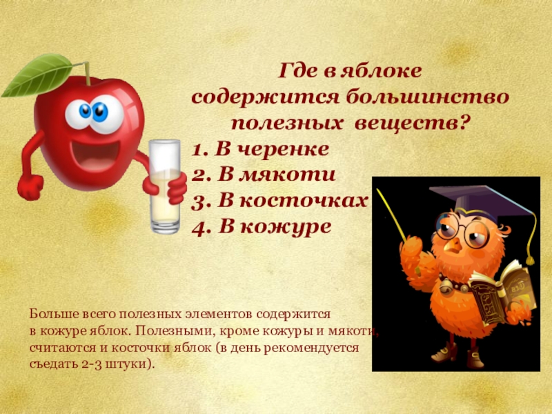в кожуре яблок. Полезными, кроме кожуры и мякоти,