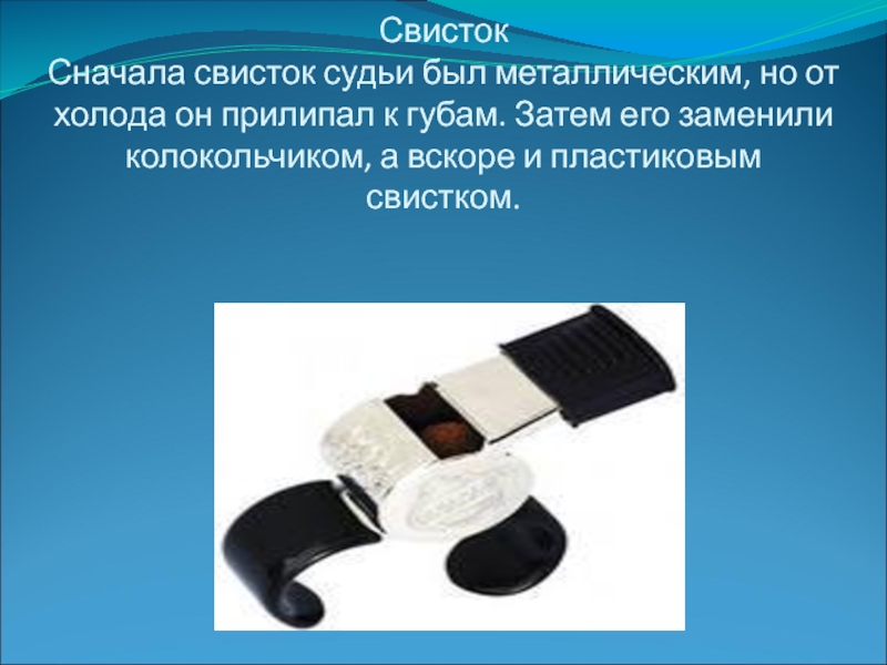 Сначала свисток судьи был металлическим, но от холода он прилипал к