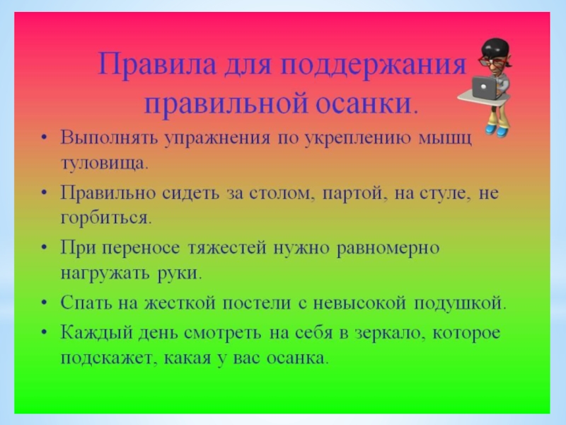 правильной осанки имеет большое значение для сохранения здоровья школьника.